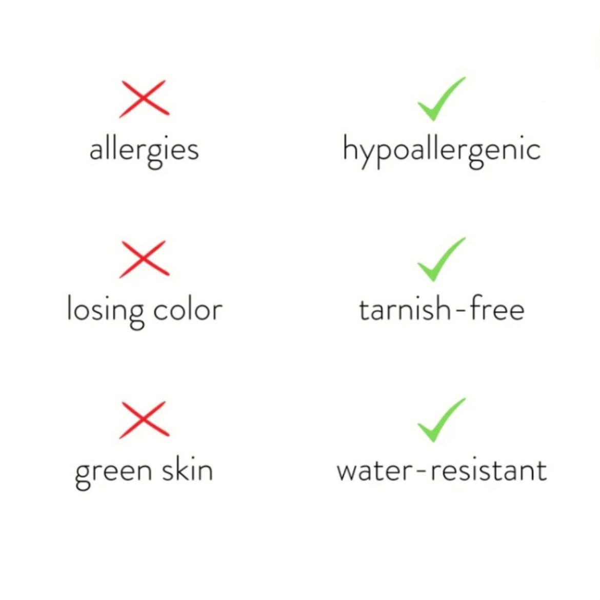 - Waterproof & tarnish-free